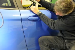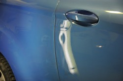 Wir drücken die Delle mit Hilfe von Spezialwerkzeu- gen meist über den Fensterschacht von innen heraus, ohne dabei den Lack zu beschädigen.